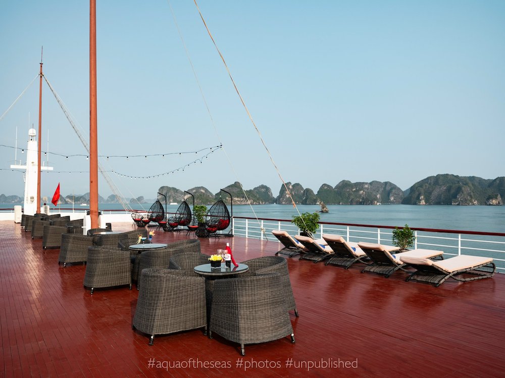 Aqua of the Seas offers a full range of high-end amenities suitable for couples, families, and corporate groups. On board, guests can enjoy a luxury restaurant and bar, spacious cabins with elegant design, an outdoor swimming pool, fitness center, spa & massage services, and a dedicated kids’ playroom – all crafted to deliver maximum comfort and convenience.