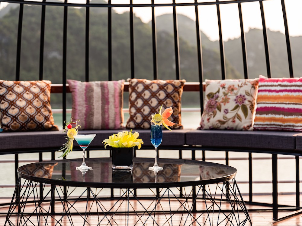 The cruise features 32 luxury cabins, ranging from 38m² to 160m², each thoughtfully designed to feel like a home away from home. Relax on a plush bed after a day of exploration or unwind with a cup of coffee on your private balcony while admiring the stunning limestone karsts of Lan Ha Bay. Every moment on board promises a memorable and relaxing experience for you and your loved ones.