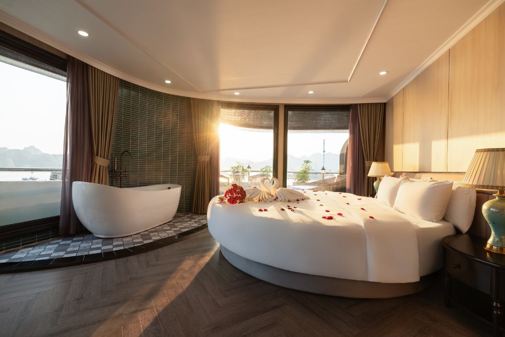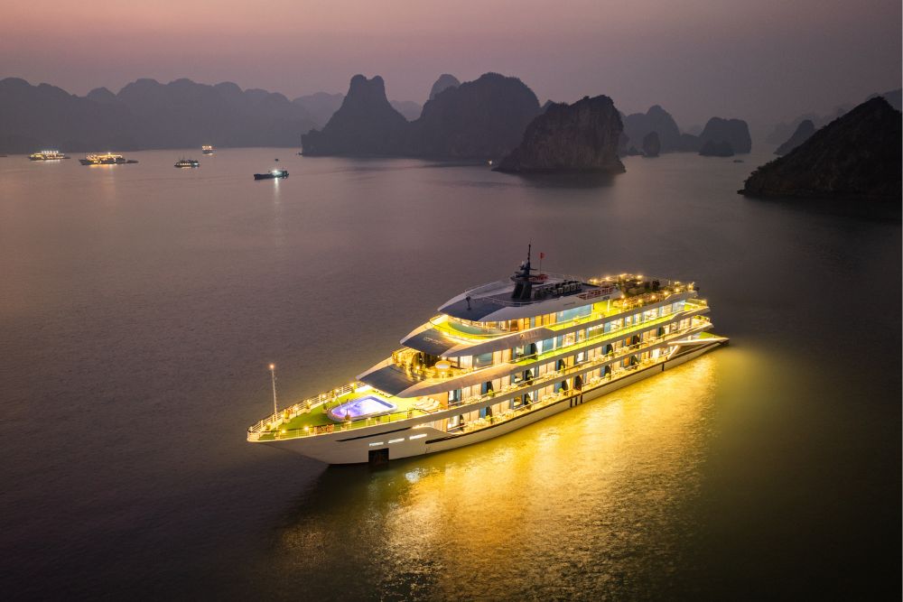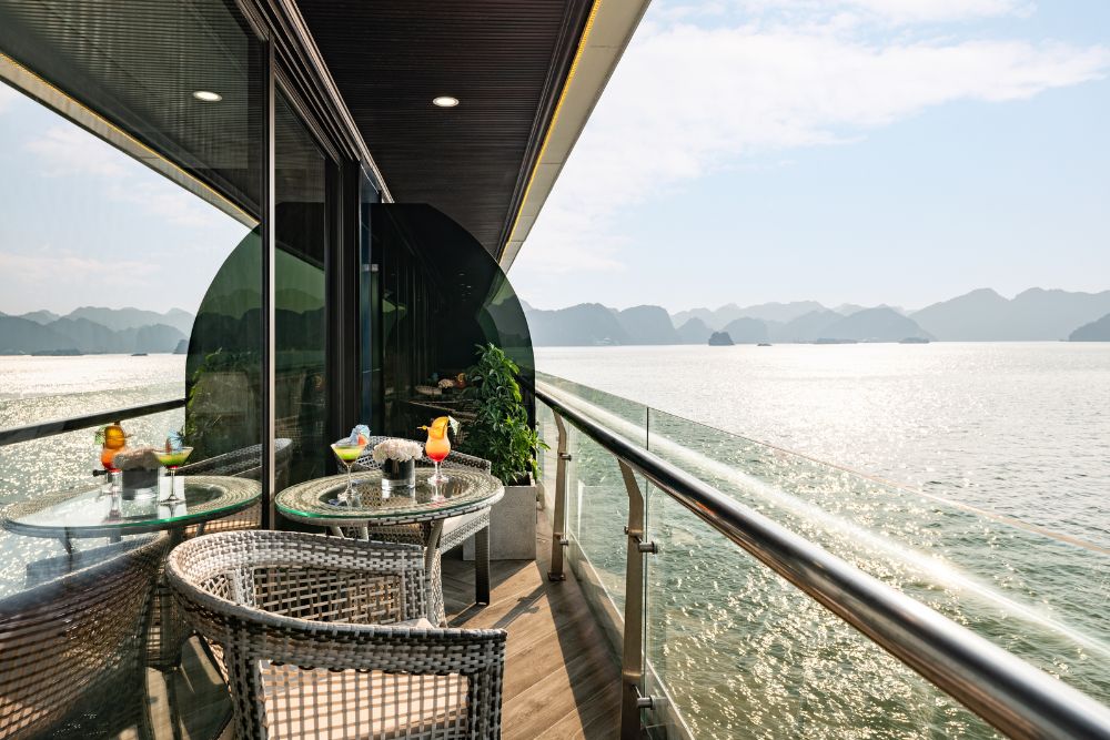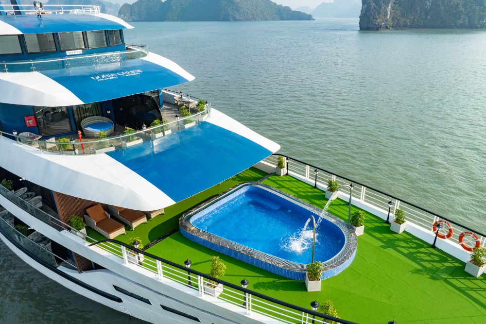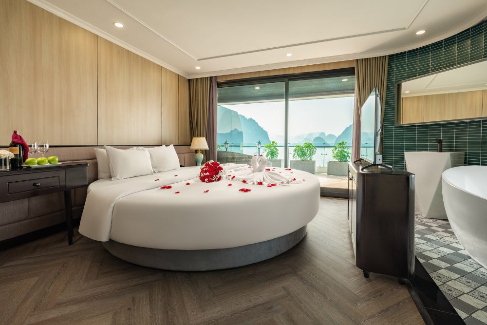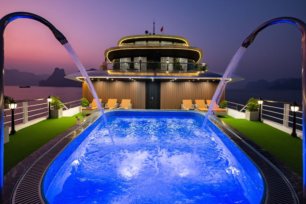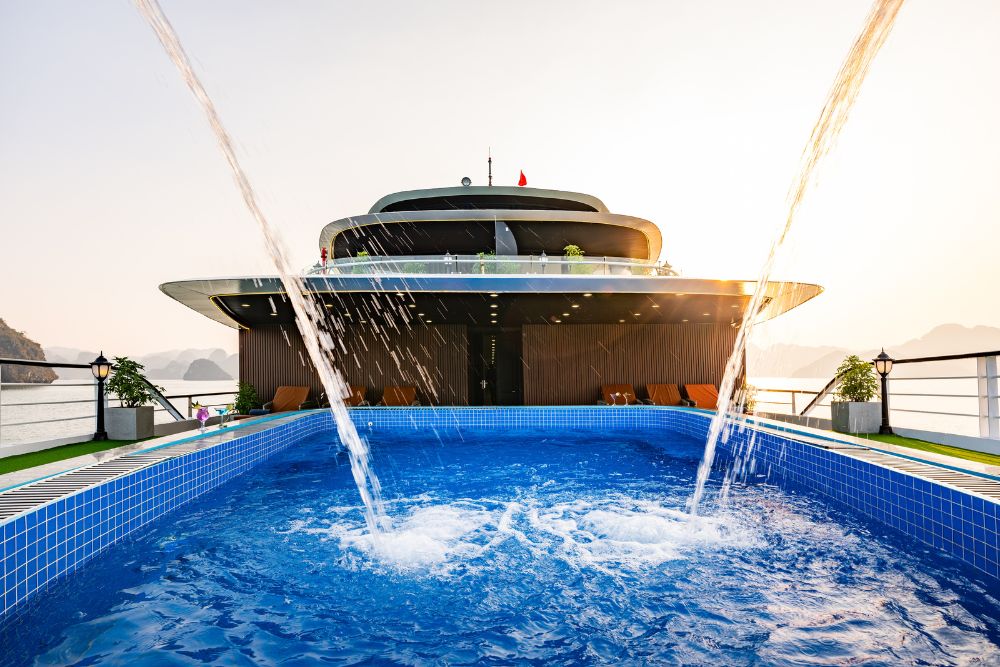 The cruise features 25 spacious balcony cabins, allowing guests to enjoy breathtaking views of the bay at any time of day. Each cabin is fully equipped with modern amenities, creating a relaxing and comfortable space throughout your journey. Onboard facilities include a four-season swimming pool, sky bar, luxury spa, and more – ensuring both entertainment and relaxation during your stay.