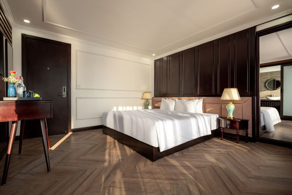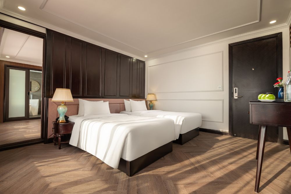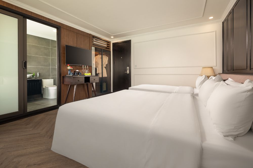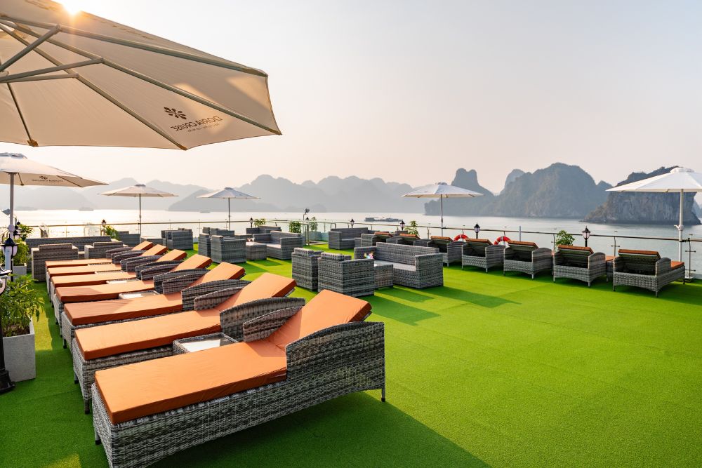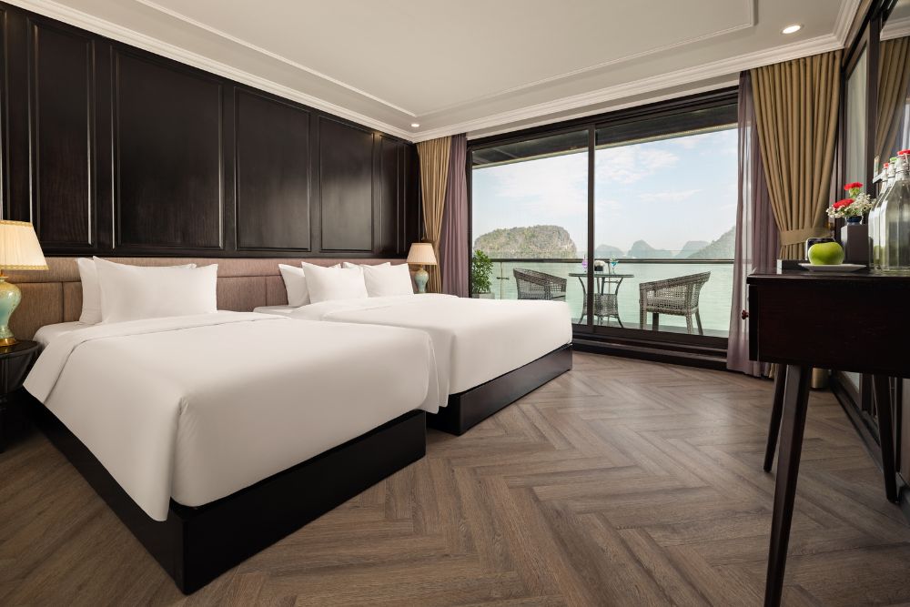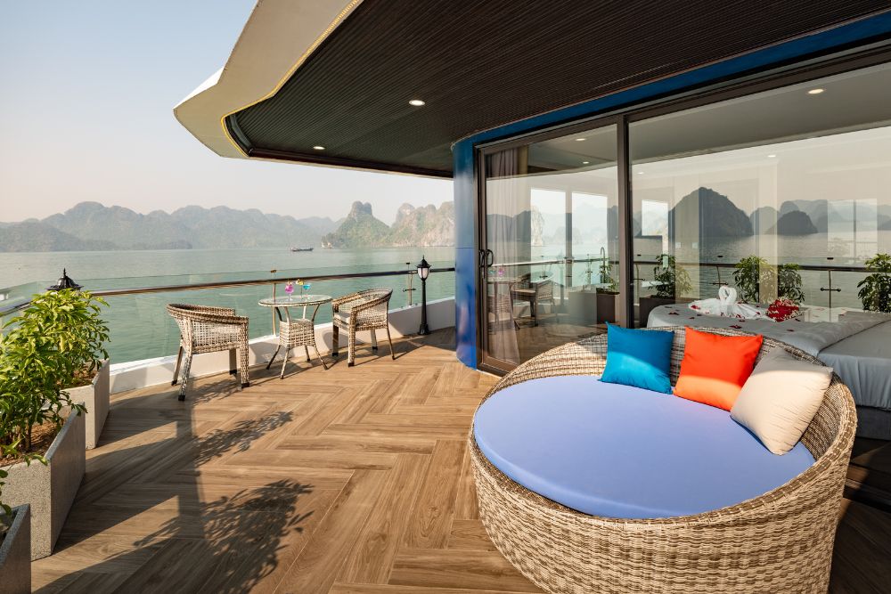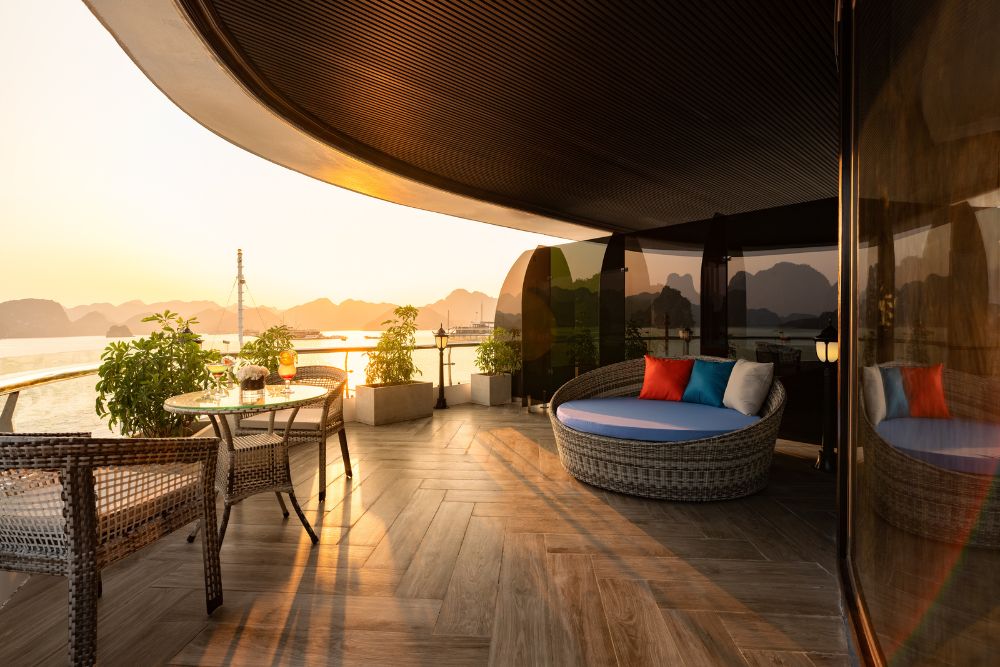 The cruise features 25 spacious balcony cabins, allowing guests to enjoy breathtaking views of the bay at any time of day. Each cabin is fully equipped with modern amenities, creating a relaxing and comfortable space throughout your journey. Onboard facilities include a four-season swimming pool, sky bar, luxury spa, and more – ensuring both entertainment and relaxation during your stay.