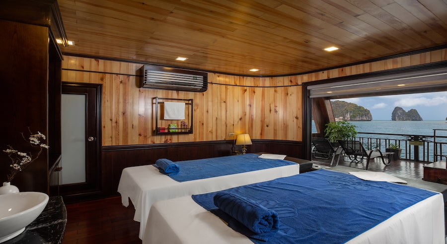 The cruise features 27 spacious and well-appointed cabins, each equipped with a private balcony and en-suite bathroom, allowing guests to fully immerse themselves in the natural beauty of the bay. With cabin sizes starting from 45m², La Regina Legend Cruise is among the few cruises offering extra-large suites in the region. Every cabin is furnished with high-quality amenities, including wooden interiors, air conditioning, TV, minibar, safe box, wardrobe, and premium bathroom amenities, ensuring maximum comfort throughout your journey.