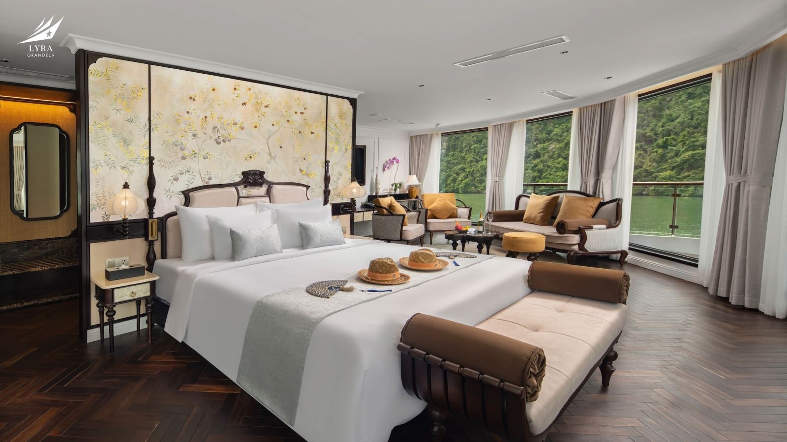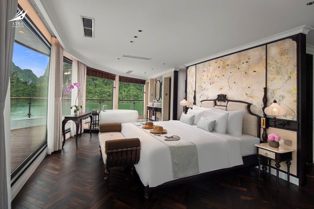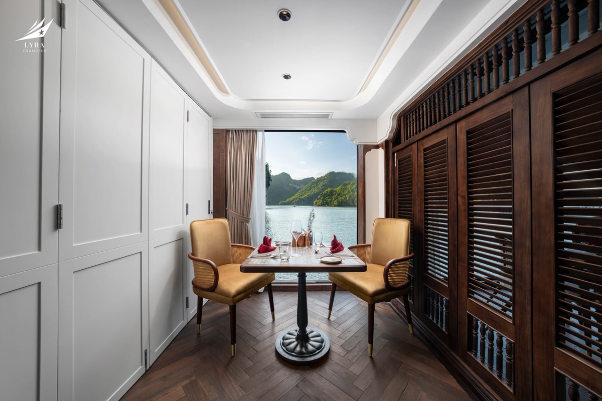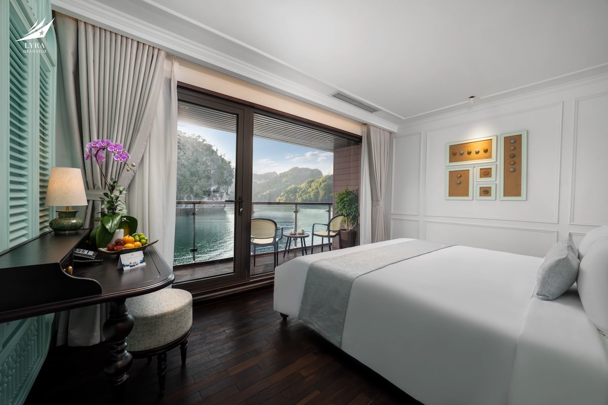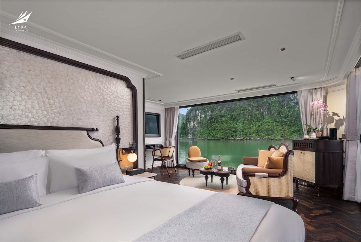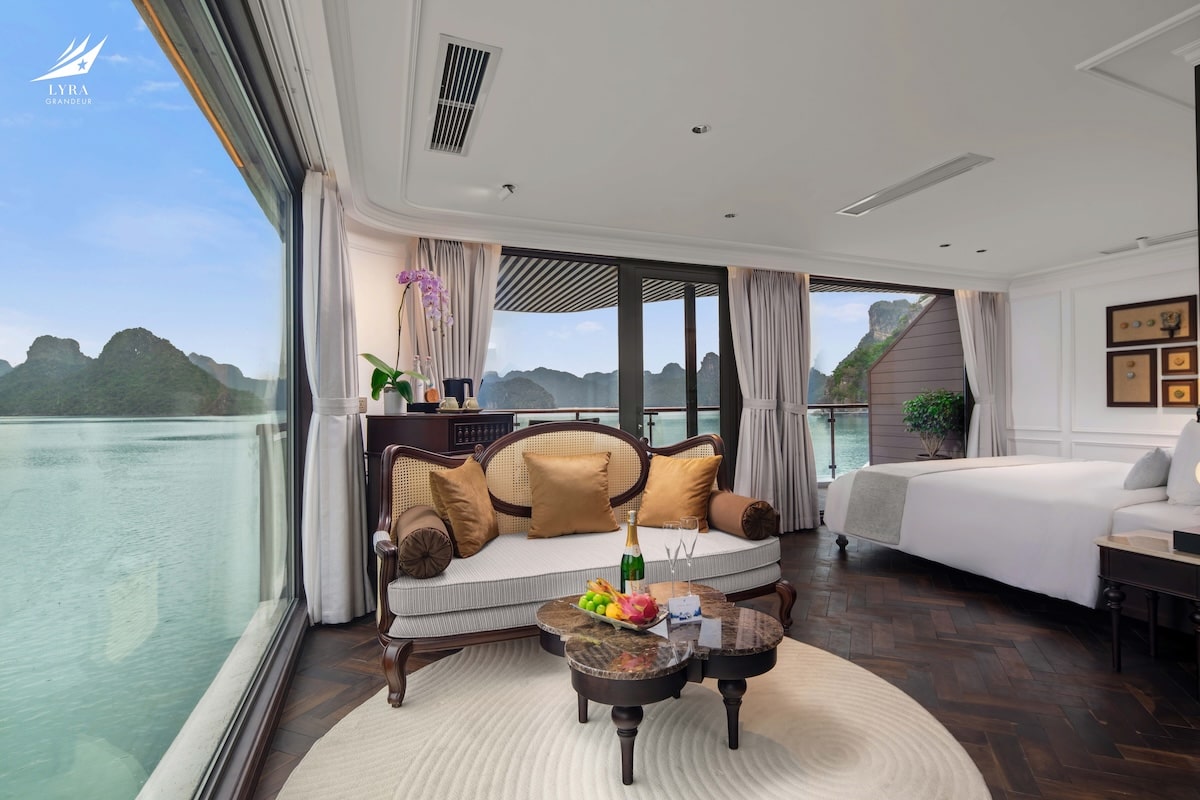 Lyra Grandeur features 33 luxurious cabins across 3 decks, offering a variety of room categories suitable for couples, families, and groups. Each cabin is thoughtfully designed with floor-to-ceiling windows and a private balcony, allowing guests to fully immerse in the breathtaking views of the bay. Modern amenities and refined interiors ensure a cozy, home-like atmosphere throughout your stay.