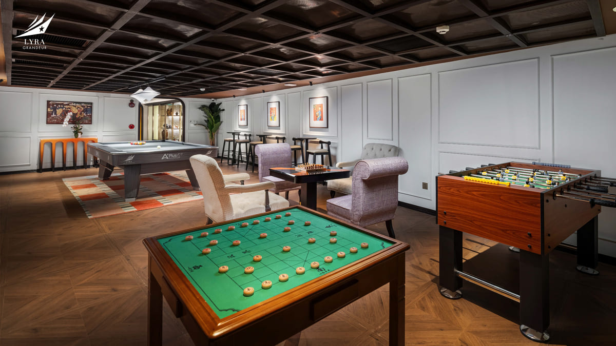 From the moment you step onboard, Lyra Grandeur takes you on a journey of relaxation and indulgence. Enjoy premium facilities such as the Oasis Pool and jacuzzi, savor exquisite cuisine at the Harmony of the Seas Restaurant, or unwind with a drink at the Oasis Bar. Wellness lovers can rejuvenate at the Sea Memory Spa, fitness center, and outdoor sauna. Meanwhile, a wide range of entertainment options including Sea Melody Theatre, poker club, billiards, and table football ensures endless fun during your cruise.