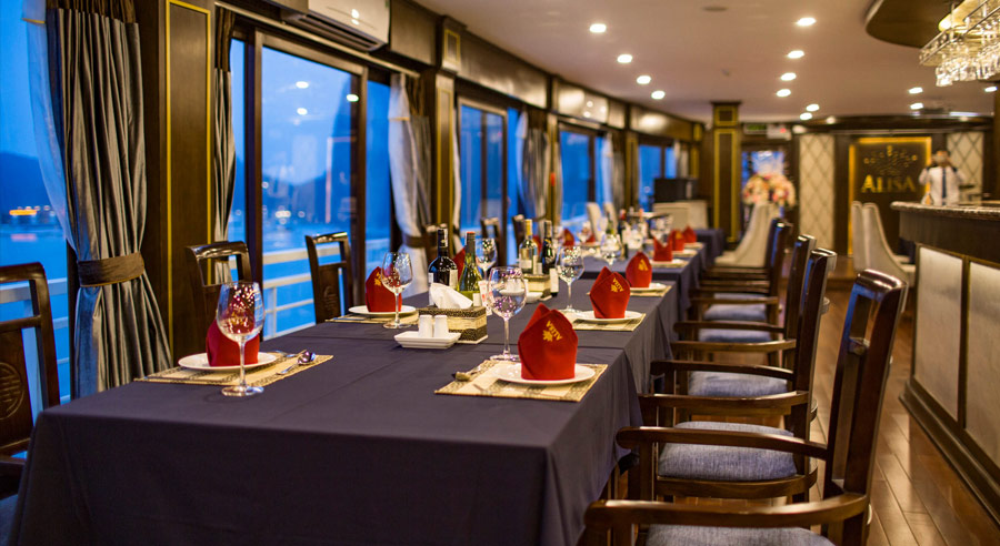With its elegant accommodations, reliable service, and convenient transportation, Alisa Cruise promises a memorable and enjoyable exploration of the stunning landscapes of Halong Bay.