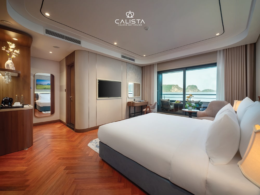 Calista Cruise features 38 spacious cabins, categorized into 6 room types and spread across the first three decks. Each cabin ranges from 30m² to 126m² and is fully equipped with modern amenities to ensure maximum comfort. Guests can relax on plush beds or enjoy the stunning bay views from private balconies, creating a perfect blend of luxury and tranquility.