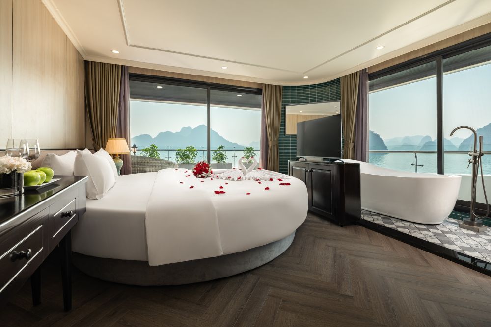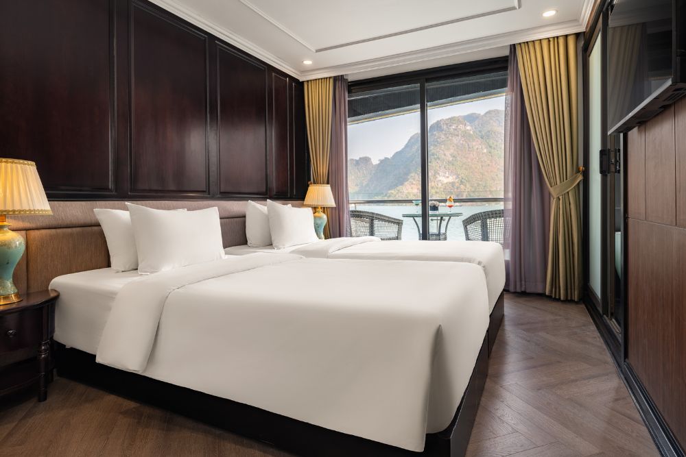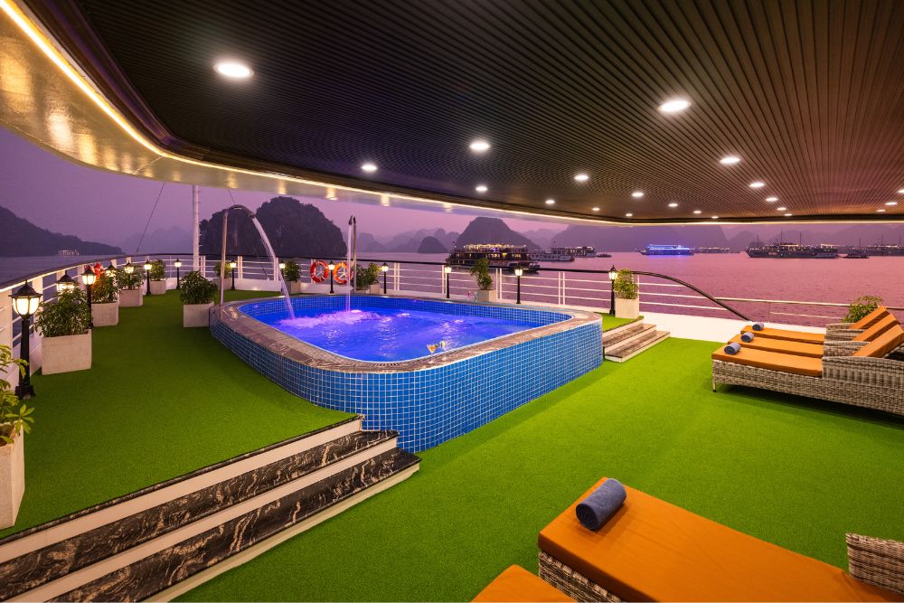 The cruise features 25 spacious balcony cabins, allowing guests to enjoy breathtaking views of the bay at any time of day. Each cabin is fully equipped with modern amenities, creating a relaxing and comfortable space throughout your journey. Onboard facilities include a four-season swimming pool, sky bar, luxury spa, and more – ensuring both entertainment and relaxation during your stay.