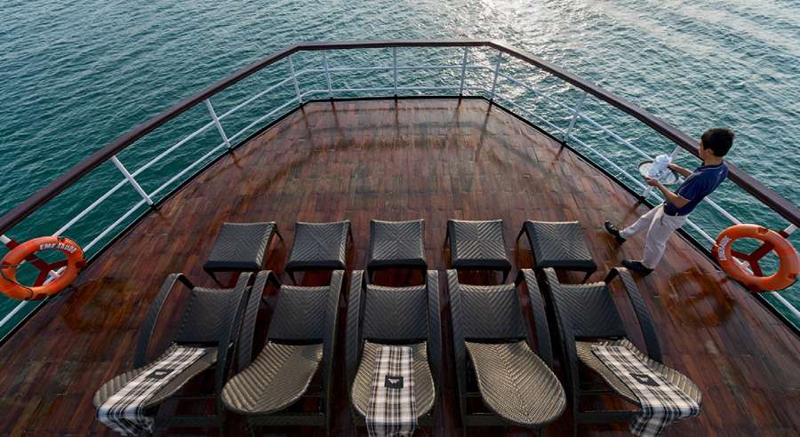 Launched in 2003, Emeraude Cruise is a pioneer luxury cruise in Halong Bay, inspired by the golden age of classic steamship travel. The vessel is a faithful recreation of a historic paddle steamer, bringing back the charm and elegance of early 20th-century cruising.