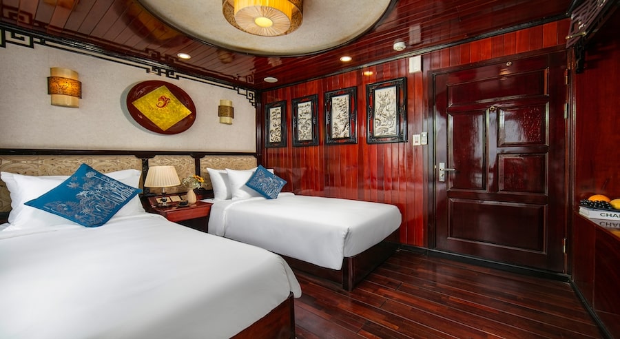 La Regina Classic 2 is the newest addition to the La Regina Fleet, featuring a traditional design that blends classic charm with modern comfort. With only 16 well-appointed cabins and elegant wooden interiors, the cruise offers an intimate and relaxing atmosphere—perfect for travelers seeking a peaceful escape in Halong Bay.