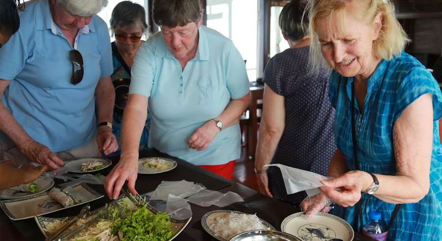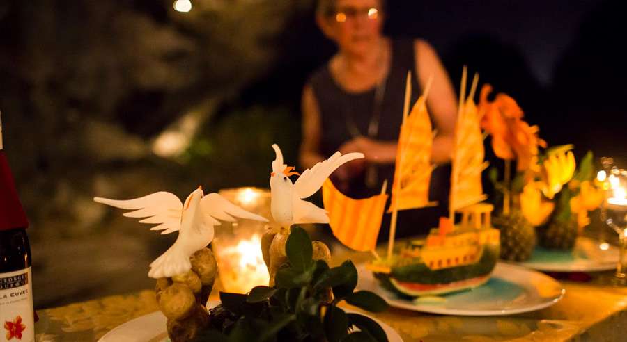 Morning: The second day in LaFairy Cruise often starts with Tai Chi excercises for a healthy body and good spirit. In this day, LaFairy will start cruising to Ti Tov Island. The cruise will provide two options for guests: either swimming or climbing to the top of the island for a bird eye view of Halong Bay. Then, return to LaFairy, passengers will be served an exceptional buffet lunch while watching a cooking demonstration.