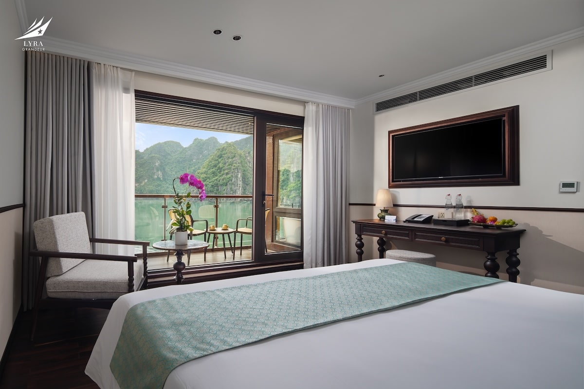 Lyra Grandeur features 33 luxurious cabins across 3 decks, offering a variety of room categories suitable for couples, families, and groups. Each cabin is thoughtfully designed with floor-to-ceiling windows and a private balcony, allowing guests to fully immerse in the breathtaking views of the bay. Modern amenities and refined interiors ensure a cozy, home-like atmosphere throughout your stay.