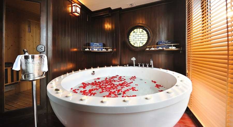 Each Paradise Luxury vessel features 17 lavishly designed cabins, ranging from 17.2 to 23 sqm, offering spacious and comfortable accommodation for all guests. The interiors are thoughtfully crafted with modern amenities, ensuring a relaxing stay while enjoying the stunning beauty of Halong Bay. A cozy yet stylish dining room and a spacious sundeck with panoramic views create perfect spaces for both leisure and social events.