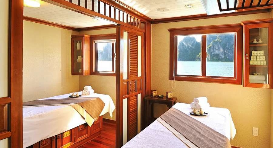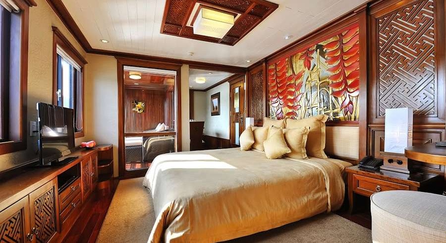 Launched in January 2012, the vessel is inspired by traditional Vietnamese wooden junk design, measuring 41.5 meters in length, 9 meters in width, and 11.5 meters in height. The cruise features only 8 ultra-luxurious suites, including Junior Suite, Superior Suite, and Premium Suite. Each suite ranges from 38 to 42 sqm, providing generous space, refined interiors, and premium amenities—ideal for a private and indulgent stay.